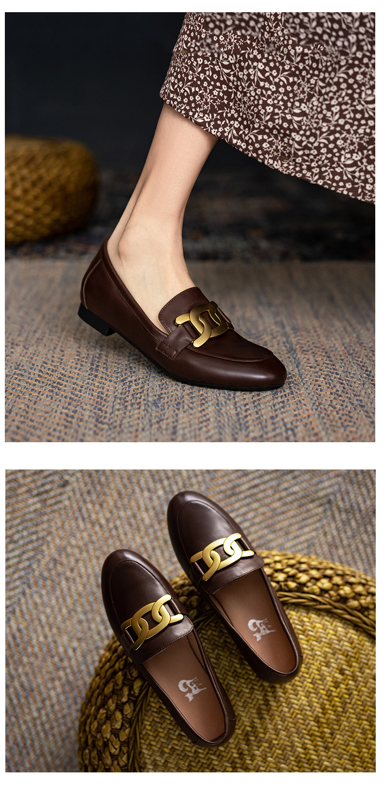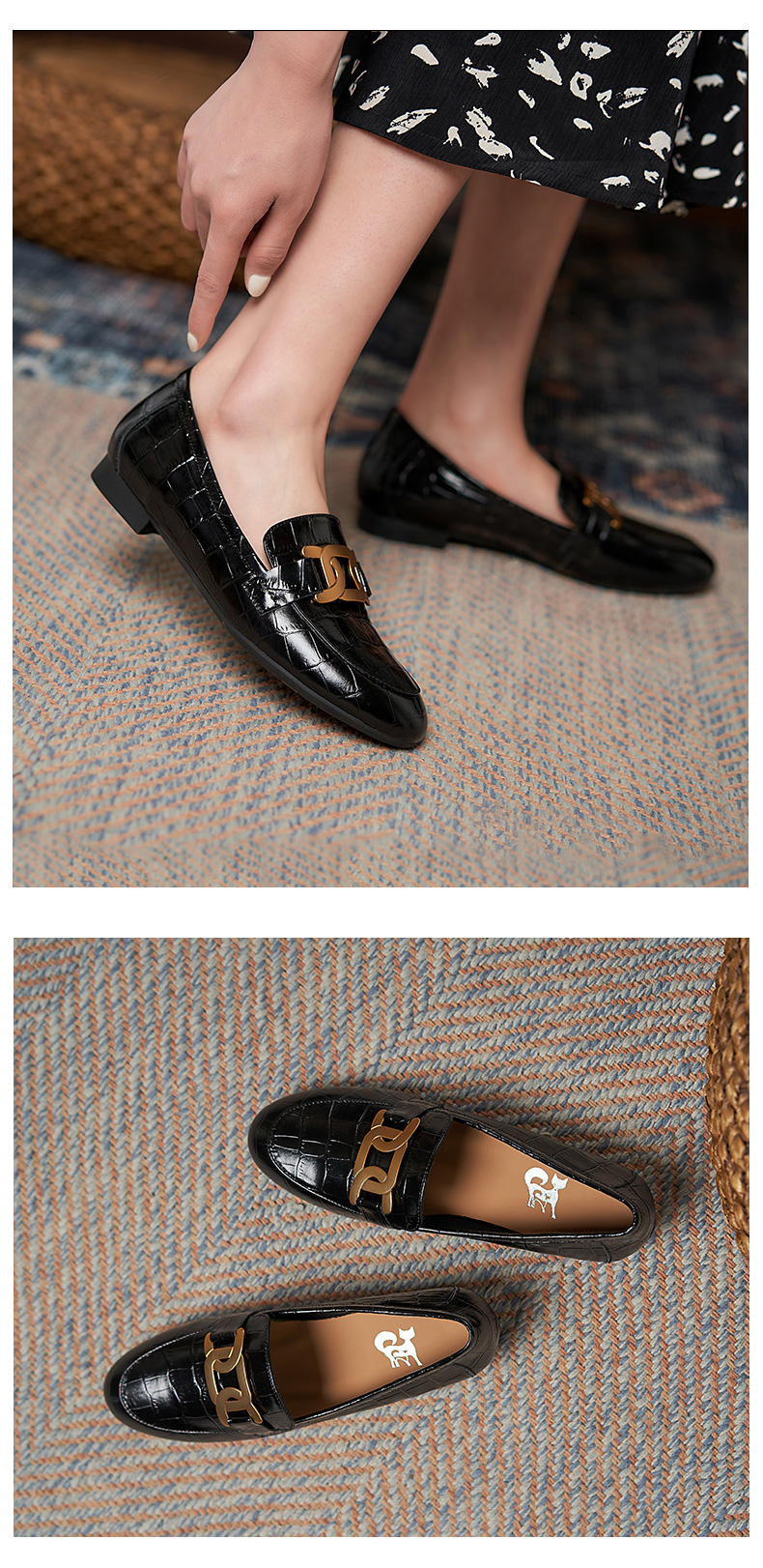 樂福鞋女真皮2021爆款鞋子春英倫風(fēng)圓頭單鞋一腳蹬黑色平底小皮鞋