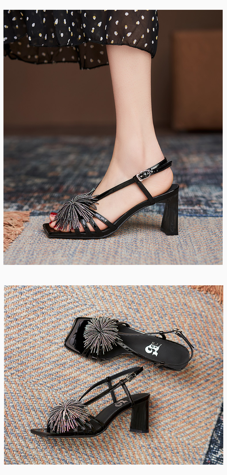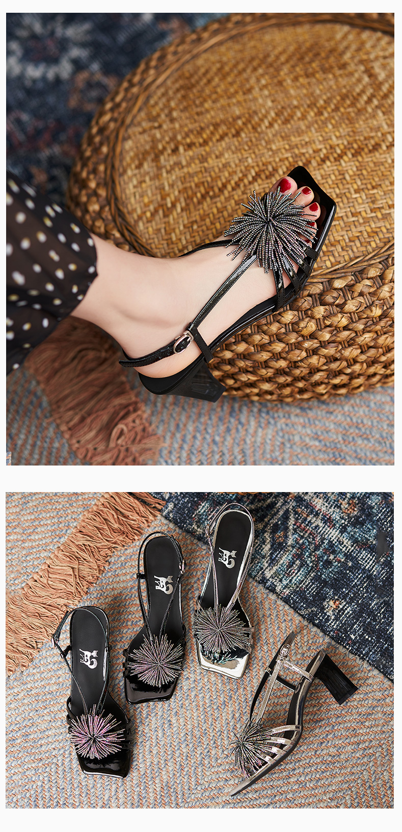 高跟涼鞋女2021年夏季新款仙女風氣質法式一字帶粗跟露趾時裝涼鞋