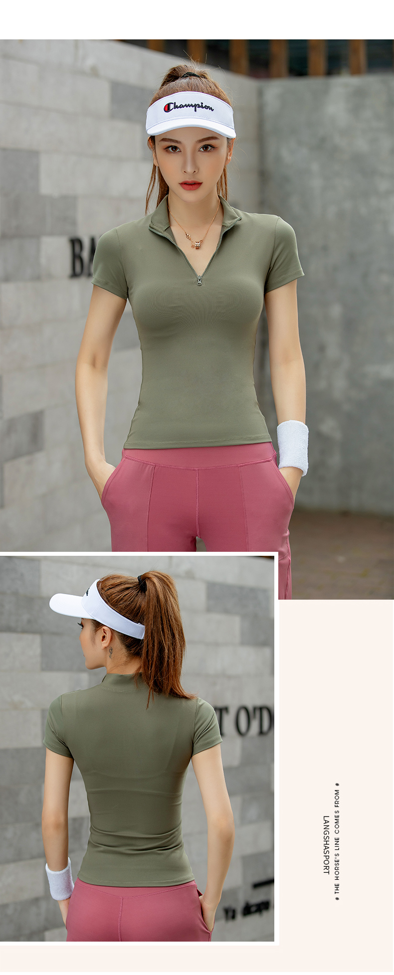 浪莎運動短袖女速干透氣緊身夏季性感V領瑜伽健身服跑步上衣T恤