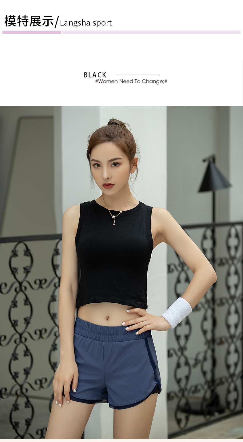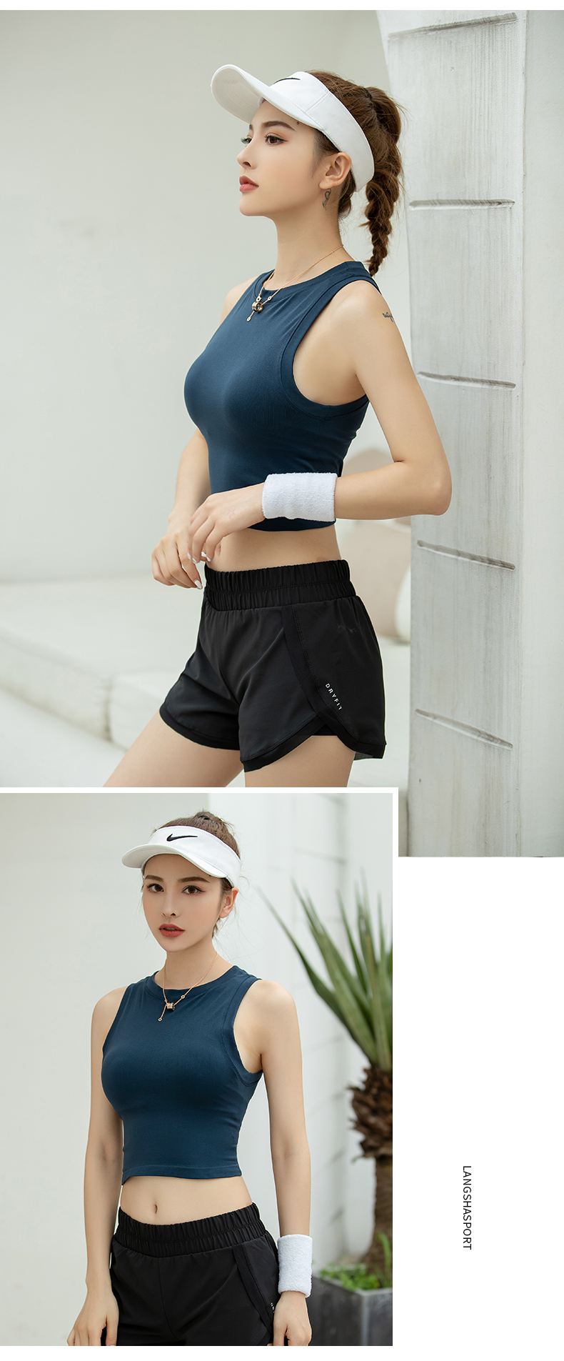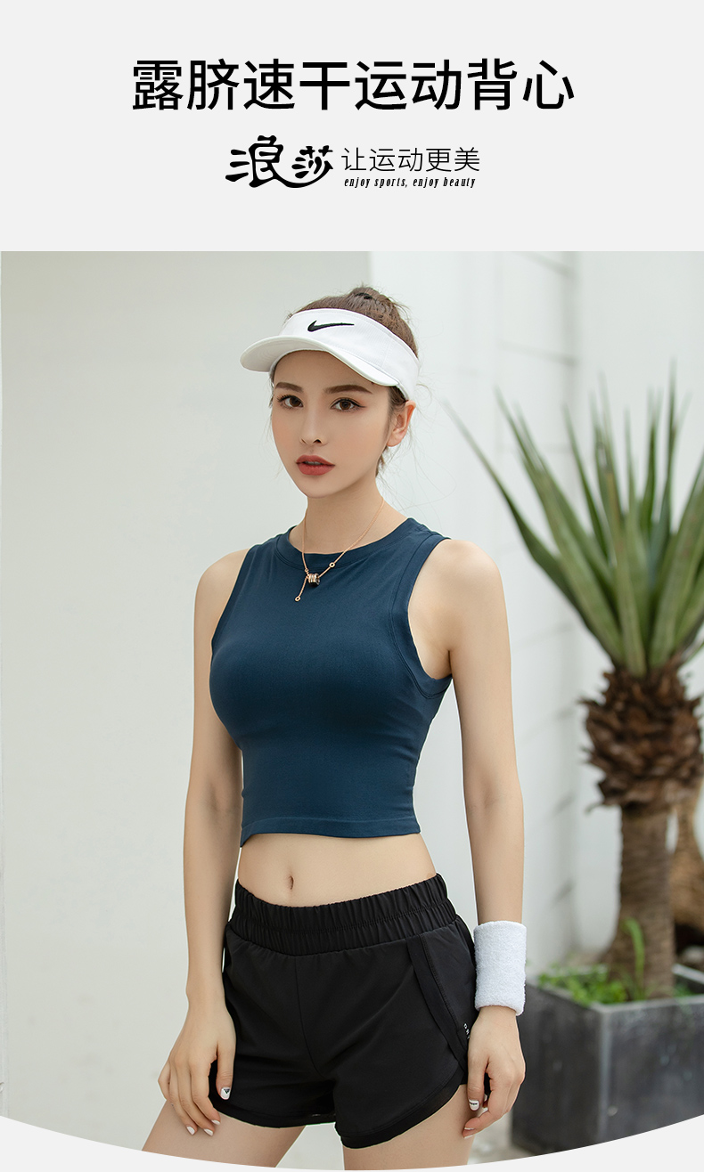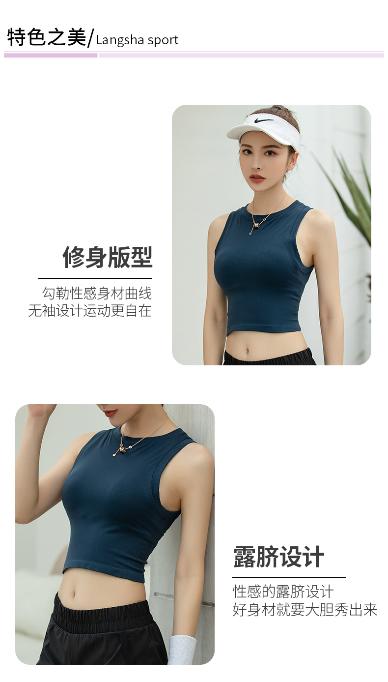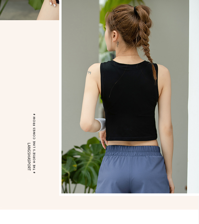 浪莎運(yùn)動(dòng)背心女緊身露臍無(wú)袖跑步瑜伽服上衣罩衫薄款健身速干T恤