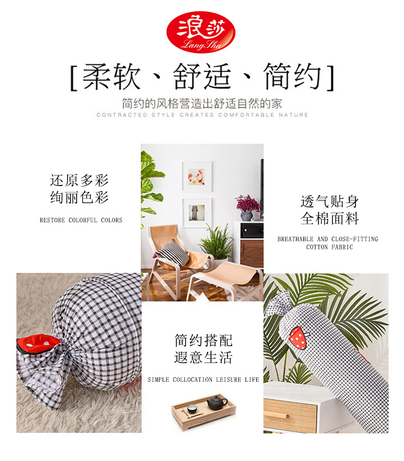 浪莎夏天純棉糖果圓柱枕頭夏季睡覺側(cè)睡夾腿抱枕長條枕女生可拆洗